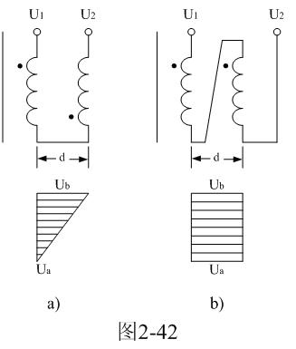對于圖2-42-b,可求得變壓器初級或次級兩層線圈之間的分布電容為: