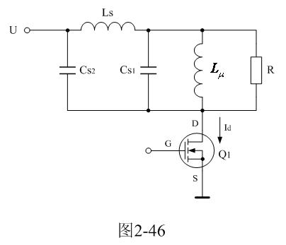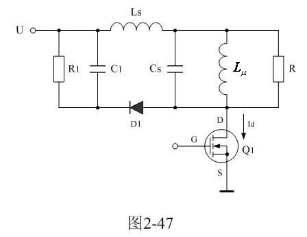 在圖2-46中,Cs1、Cs2都是分布電容,它們對于漏感 來說,既可以產生串聯(lián)振蕩,又可以產生并聯(lián)振蕩。在電源開關管Q1導通瞬間,漏感與分布電容主要是產生串聯(lián)振蕩,因為輸入電壓開始向串聯(lián)振蕩回路提供能量;在電源開關管Q1關斷瞬間,漏感與分布電容主要是產生并聯(lián)振蕩,因為漏感 必須要通過并聯(lián)回路釋放能量。在實際應用中,漏感相對于勵磁電感 來說很小,因此如果不考慮漏感的作用,完全可以把Cs1、Cs2看成是一個分布電容。