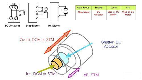 光學(xué)變焦可采用直流馬達(dá)或步進(jìn)馬達(dá)來實(shí)現(xiàn)。對(duì)于快速變焦作業(yè),特別是當(dāng)DSC電源打開時(shí),采用直流馬達(dá)更好,因?yàn)樗霓D(zhuǎn)矩大于步進(jìn)馬達(dá)的轉(zhuǎn)矩。但另一方面,為在正常作業(yè)時(shí)進(jìn)行平滑和精確的變焦,采用步進(jìn)馬達(dá)可能會(huì)更好些。對(duì)于單光圈應(yīng)用,可使用DC致動(dòng)器調(diào)節(jié)光圈,而當(dāng)需要精確控制位置時(shí)則采用步進(jìn)馬達(dá)。