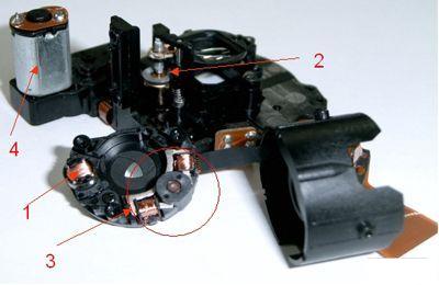 圖1:DSC使用的所有馬達(dá),其中1為用于快門的直流致動(dòng)器,2為用于自動(dòng)調(diào)焦的步進(jìn)