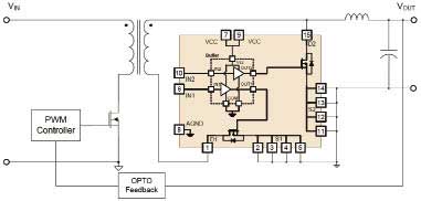 用來調(diào)整次級電壓的二極管通常由MOSFET代替,該模塊包含了柵極驅(qū)動(dòng)器和功率MOSFET,采用外引腳極寬的小型單列直插封裝,可減小寄生電感和電阻。