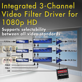 飛兆半導(dǎo)體擁有業(yè)界最廣泛的精選視頻濾波器和創(chuàng)新的開關(guān)矩陣產(chǎn)品系列,支持標(biāo)清和高清視頻應(yīng)用如機頂盒、DVD、電視和便攜式多媒體設(shè)備。這些集成式產(chǎn)品支持全部視頻標(biāo)準(zhǔn)和信道配置,并可替代多個分立組件和節(jié)省寶貴的電路板空間。FMS6303采用14腳TSSOP封裝,其引腳與飛兆半導(dǎo)體成功的FMS6203可選SD、ED、1080i HD視頻濾波器兼容。