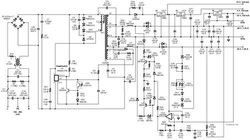 傳統(tǒng)的音頻系統(tǒng)通常使用基于線性變壓器的電源,不但體積笨重,而且隨著原材料價格的飛漲,制造成本日益昂貴。本文將為您介紹使用PowerIntegrationsPKS607YN設計的一款75W/126W峰值輸出電源。PeakSwitch產品系列為高質量的音頻及視頻產品電源提供出色解決方案,為高動態(tài)內容的音樂提供穩(wěn)定的功率輸出。降低了THD(總諧波失真),并極大地提高了音頻的質量。如下介紹的設計使用一個PeakSwitch器件設計一個多路輸出的電源,并使用一個合適的磁放大器控制電路來確保兩個主輸出上的交叉穩(wěn)壓。