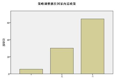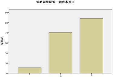 調(diào)查顯示,在危機(jī)影響中,企業(yè)做出了降低一切成本開支,重新調(diào)整供應(yīng)商、加大市場開發(fā)力度,調(diào)整客戶群,抓住國家內(nèi)需政策等一系列戰(zhàn)略性政策調(diào)整,其中,企業(yè)本身的調(diào)整降低一切成本開支和加大市場開發(fā)力度成為最重要部分,分別占40.4%和54.8,正所謂內(nèi)因決定外因,從主要矛盾出發(fā)。而在外因當(dāng)中,在重新挑選供應(yīng)商、調(diào)整客戶群和抓住國家內(nèi)需政策上,企業(yè)的選擇比例分別是15.1%,36.3和30.1%。(如下列組圖所示)