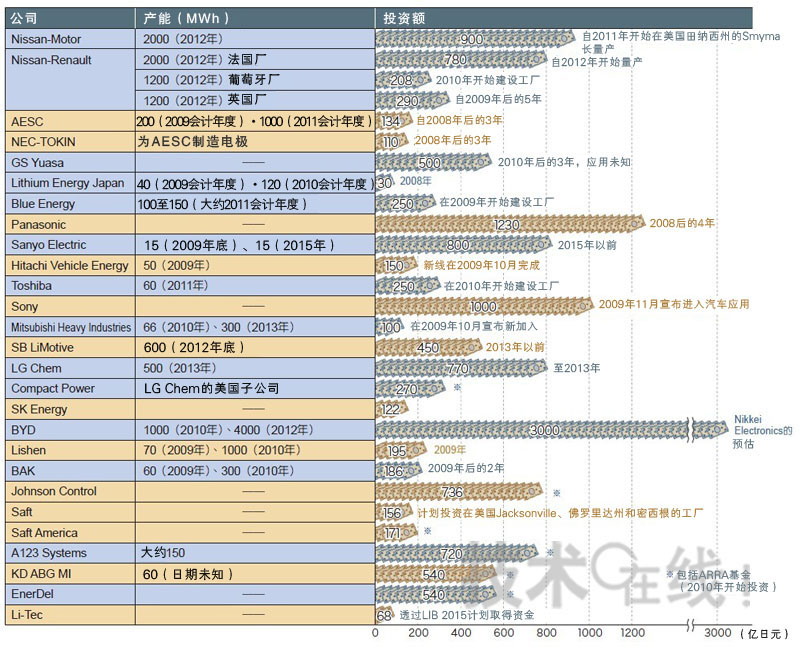 單單是NikkeiElectronics所調(diào)查的投資就已經(jīng)超過(guò)1萬(wàn)億日元了。鋰離子充電電池的帶動(dòng)應(yīng)用即將從手機(jī)轉(zhuǎn)向電動(dòng)車。