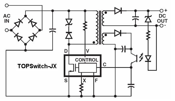 圖:TOPSwitch-JX用于反激式電源設(shè)計(jì)