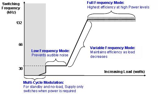 PI市場部資深經(jīng)理李子俊強(qiáng)調(diào)了TOPSwitch-JX特有的多模式控制(MCM)算法,采用該技術(shù)可持續(xù)監(jiān)測輸出功率,以確定最佳開關(guān)模式并改變MOSFET的工作頻率,從而提高整個負(fù)載范圍內(nèi)的功率效率。該技術(shù)是內(nèi)建在TOPSwitch-JX芯片內(nèi)部的,無需電源工程師做特殊的設(shè)計(jì)。李子俊表示:“開關(guān)電源設(shè)計(jì)的主要訴求是在輕載的時(shí)候如何把電源本身功耗降低,在重載的時(shí)候如何把轉(zhuǎn)換效率提高。采用該特殊的技術(shù),在空載和輕載時(shí)降低開關(guān)頻率,能極大的降低輕載及空載的功耗,對于能源之星要求的顯示器待機(jī)100mW,適配器空載100mW,以及PC電源待機(jī)0.5W的要求,均能充分滿足。比如針對一款顯示器的設(shè)計(jì),在264VAC輸入時(shí)空載功耗為66mW,加上待機(jī)時(shí)負(fù)載功耗30mW,完全能滿足標(biāo)準(zhǔn)要求。此外,由于從輕載到重載開關(guān)頻率也在線性變化,從而保證了從輕載到重載的轉(zhuǎn)換效率平整。”