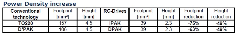 從功率密度來(lái)說(shuō)如果選用這種小封裝的IPARK產(chǎn)品去取代TO220封裝的話,面積可以減少75%,高度可以減少49%。而用這種DPARK封裝產(chǎn)品的話,如果去取代D2PARK這種產(chǎn)品,它的面積可以減少63%,高度同樣可以減少到49%。