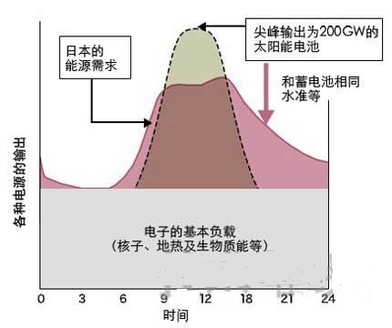 與市電同價的太陽能很可能加快引進(jìn)在工廠和其他企業(yè)設(shè)施中,使它得以符合或超過日本政府的“2020年以前28GW,2030年以前53GW”的目標(biāo)。日本新能源產(chǎn)業(yè)技術(shù)綜合開發(fā)機(jī)構(gòu)(NEDO)推出的太陽能電池采用預(yù)測(如出版PV2030)中預(yù)估在2030年前將安裝高達(dá)201.8GW容量。此數(shù)字假設(shè)最大的采用率,每隔一間工廠20%的屋頂面積及所有房屋的1/3都裝有太陽能電池。