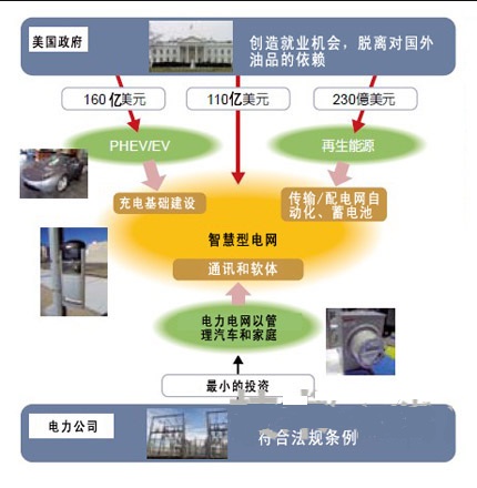 美國在構(gòu)建智能電網(wǎng)的同時,還將一舉建設(shè)充電基礎(chǔ)設(shè)施。許多企業(yè)為獲得這一市場而參與了競爭,他們的目標(biāo)是,以電力資訊為核心推出新的服務(wù),以成為汽車和家電產(chǎn)業(yè)的主角為目標(biāo)。