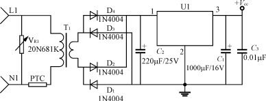 輸入電路的電阻R1(或R1、R2)要采用品質(zhì)較好的金屬膜電阻或水泥電阻,功率2~5W,阻值100~820Ω;降壓電容C2(或C5)采用高質(zhì)量的高壓金屬化聚丙烯電容,一般0.22~0.47μF,耐壓應(yīng)≥AC250V,電容的容量過大會引起視在功率超標(biāo)。