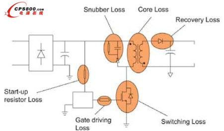 目前,大多數(shù)100W以下的電子設(shè)備,如電源適配器、充電器、無繩電話、ADSL路由器、LCD顯示器和DVD等等,都是采用離線反激式開關(guān)電路,將電網(wǎng)提供的85V~275V交流電轉(zhuǎn)換為電子設(shè)備所需要的直流電壓。正常工作狀態(tài)下,反激式開關(guān)電源的損耗主要包括導(dǎo)通損耗和開關(guān)損耗,以及控制電路的損耗。待機狀態(tài)下,因為系統(tǒng)的輸出電流接近于零,導(dǎo)通損耗可以忽略,開關(guān)損耗和控制電路的損耗成為主要的系統(tǒng)待機功耗。降低待機功耗,應(yīng)著眼于開關(guān)損耗和控制電路的損耗的降低。