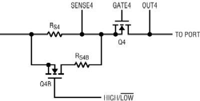 當(dāng)Q4B關(guān)閉的時(shí)候,端口工作在符合802.3af標(biāo)準(zhǔn)的模式。打開(kāi)Q4B開(kāi)關(guān),端口就工作在大電流模式。這種切換可以在任何時(shí)間進(jìn)行:在檢測(cè)/分類(lèi)之前;在檢測(cè)/分類(lèi)之后,但是要在端口上電之前;或在供電之后。注意,Q4B可以采用低壓MOSFET,因?yàn)閮H僅Q4的漏極具有高端口電壓。Q4B要選擇導(dǎo)通電阻非常低的MOSFET,以防止在更大電流限制中精度不夠。例如,IRLML2502就是采用SOT-23封裝的一種合適的器件。
