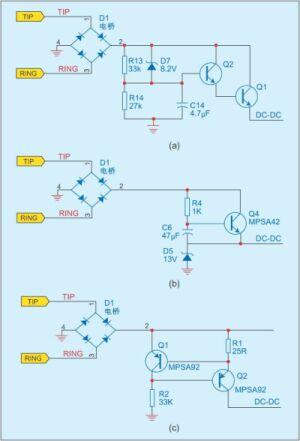 以前使用的普通電話機(jī)只需要很小功率就可滿足正常通話的要求。它們利用交換機(jī)的饋電和簡單的并聯(lián)或串聯(lián)線性穩(wěn)壓電路提供的幾毫安電流,驅(qū)動通話電路工作,而不用過多關(guān)心效率與過流保護(hù)的問題。
