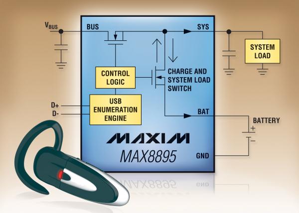 Maxim推出線性電池充電器MAX8895,器件適用于符合USB電池充電規(guī)范(1.1版本)的Bluetooth®耳機和便攜設(shè)備。MAX8895獨特地集成了自動適配器檢測功能,可分辨USB設(shè)備、USB充電器和專用充電器。器件還具有USB枚舉功能,可自動與USB主機進行交互,無需處理器干預即可優(yōu)化充電電流。該功能無需使用單獨的微控制器和系統(tǒng)軟件,因而可提供業(yè)內(nèi)僅有的單機運行充電方案。