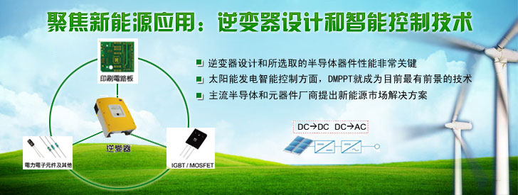 太陽能發(fā)電系統對半導體器件有什么樣的要求?這篇文章可以告訴大家。A/D轉換器、整流器、IGBT模塊、驅動、傳感、MCU以及電容等元器件廠商都有望在新得市場上獲得契機。這些器件中,最重要的是逆變器,它的任務是把光伏單元可變的直流電壓輸出轉換為清潔的50Hz或60Hz的正弦電壓源,為了保證輸出電壓的穩(wěn)定,需要一系列器件的配合,例如傳感器來跟蹤太陽方位角、A/D轉換器來實現數據轉換,MCU來實現穩(wěn)定輸出的算法……那么主流半導體和元器件廠商是如何針對新能源市場打造解決方案的?我們將業(yè)界的趨勢和熱點作一次總結,希望對讀者提供一定參考。