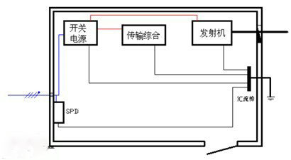 根據(jù)‘郵標(biāo)’規(guī)定“采用星形等電位連接時,基站的總接地匯流排,應(yīng)設(shè)在配電箱和第一級電源SPD附近,開關(guān)電源以及其他設(shè)備的接地排母線均由總接地匯流排引接。如設(shè)備機架與總匯流排相距較遠(yuǎn)時,可以采用兩級匯流排”。
