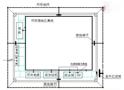 根據(jù)‘郵標(biāo)’規(guī)定“采用環(huán)形等電位連接時,應(yīng)在機房內(nèi)沿走線架和墻壁設(shè)置環(huán)形接地匯集線,環(huán)形接地匯集線應(yīng)多點就近與地網(wǎng)連通,站內(nèi)設(shè)備由環(huán)形匯集線就近接地。”