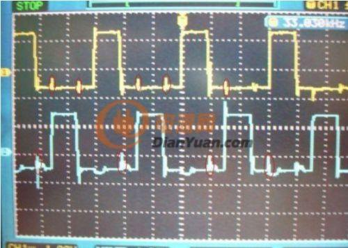 由于大部分逆變器的MOS管驅動部分的供電與主振蕩IC一樣,都為單電源供電(用SG3525輸出直驅管MOS的也不少見),因此驅動波形以0V~+15V方波為多見,此時驅動波形如受到干擾(見上圖尖刺部分),如接近達到MOS管的Vth值,則對系統(tǒng)的不良影響自不用多說,起碼也會影響效率與溫升。如采取一般的手段無法有效減低或避免這種干擾時,采用負壓關斷也就很有必要了。這個問題在專業(yè)的量產方案中,應引起足夠的重視。