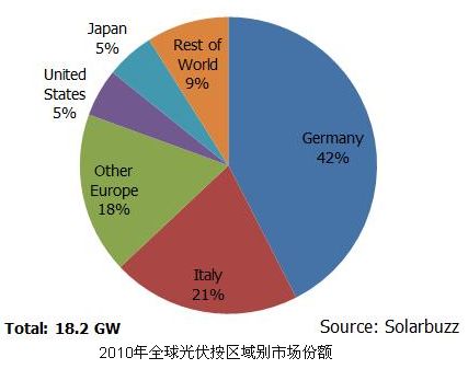 根據(jù) Solarbuzz 最新年度光伏市場報(bào)告2011 Marketbuzz,2010年全球光伏市場安裝量達(dá)到18.2GW,相較于去年增幅139%。
