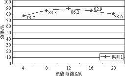 所以,在兩個(gè)原邊開(kāi)關(guān)管都處于斷態(tài)期間內(nèi),其中一個(gè)同步整流管的體二極管必須導(dǎo)通進(jìn)行續(xù)流。由于此時(shí)的負(fù)載電流不大,體二極管上的功率損耗也不明顯。隨著負(fù)載的加大,原邊的振蕩會(huì)逐漸增大,直到能夠開(kāi)通副邊同步整流管。圖4所示的是負(fù)載電流Io=20A時(shí)的變壓器原邊電壓波形以及兩個(gè)同步管驅(qū)動(dòng)波形。當(dāng)原邊開(kāi)關(guān)管關(guān)斷時(shí),存在于漏感中的能量足夠以開(kāi)通兩個(gè)同步管。然而同步管的關(guān)斷只能通過(guò)外加驅(qū)動(dòng)信號(hào)來(lái)實(shí)現(xiàn)。它們分別來(lái)自于原邊開(kāi)關(guān)管的門極驅(qū)動(dòng)vg1和vg2。圖5是測(cè)得的變流器的效率曲線圖。