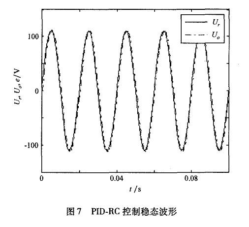 PID控制對于周期性信號無法做到無差跟蹤,存在周期性穩(wěn)態(tài)誤差。嵌人了重復控制器的系統(tǒng),輸出能夠很好地跟蹤輸入信號,系統(tǒng)迅速進入穩(wěn)態(tài),表現(xiàn)出良好的動態(tài)性能。