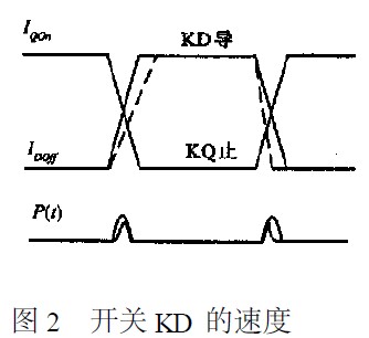 晶體管的開啟和關斷時間跟其截止頻率成反比。開啟、關斷時間越短,開關速度就越快。同時導通的持續(xù)時間取決于KQ和KD所使用的器件的開關速度。用速度不同的開關器件比較,開關器件的速度越快,同時導通的持續(xù)時間越短,尖峰干擾越是寬度窄、幅度大。