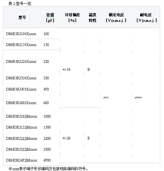 產(chǎn)品線如表2所示,產(chǎn)品結(jié)構(gòu)如圖1所示。產(chǎn)品的容值從100pF到4700pF,另外,額定電壓為AC300V (r.m.s.) 、耐電壓為AC2600V (r.m.s.) /60sec。滿足IEC 60384-14所規(guī)定的實(shí)驗(yàn)條件,通過(guò)新樹脂材料的絕緣涂裝,提高了耐溫度循環(huán)特性,能夠成為PHEV以及EV的車載充電器的AC線路濾波器用Y電容器、初級(jí)次級(jí)耦合用電容器,如圖2所示。