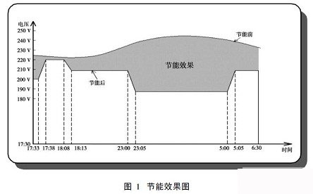 各時(shí)段的工作電壓和節(jié)能效果見(jiàn)圖1。