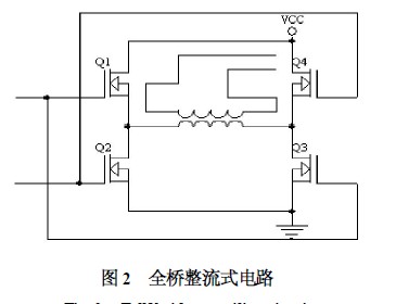 (2) 全橋整流式電路。圖2 所示為全橋整流式電路。該方案采用了4 個(gè)MOS 管,工作時(shí)對(duì)管同時(shí)導(dǎo)通,半周期內(nèi)Q1、Q3 導(dǎo)通,Q2、Q4 截止,然后Q2、Q4 導(dǎo)通,Q1、Q3 截止。這樣的工作方式使每半周期都有2 個(gè)MOS 管來(lái)分壓,對(duì)MOS管的耐壓要求就降低了,適用于高壓場(chǎng)合,但由于使用了4個(gè)MOS 管,使得損耗功率增加,開(kāi)關(guān)損耗同時(shí)增加??紤]到農(nóng)業(yè)機(jī)械一般功率較大,采用該方案必然降低電能利用率,導(dǎo)致大量的能耗損失。
