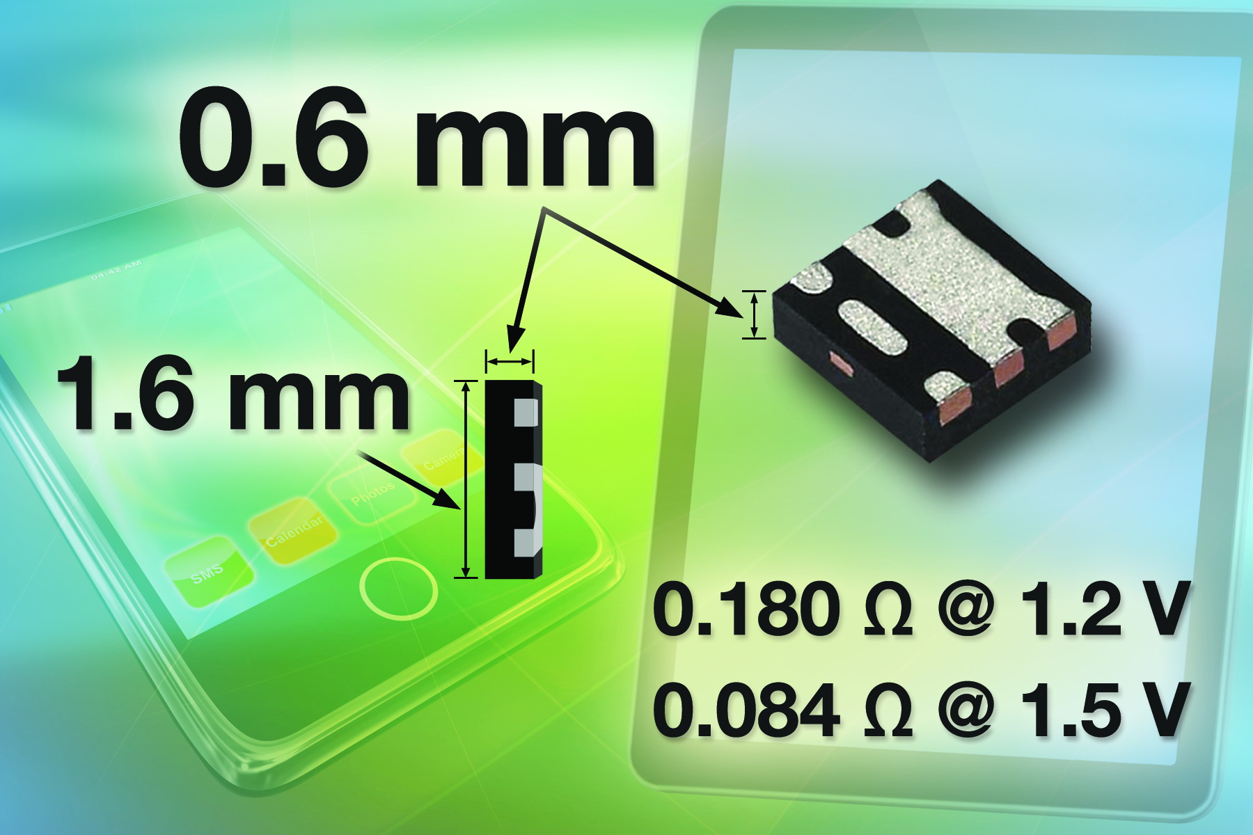 MOSFET可在1.5V和1.2V電壓下導通,能夠搭配手持設(shè)備中常見的更低電壓的柵極驅(qū)動和更低的總線電壓,從而省去了電平轉(zhuǎn)換電路的空間和成本。在手持設(shè)備中電池電量較低,并且要求消耗盡可能少的能量時,這種MOSFET尤其有用。