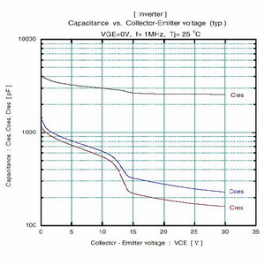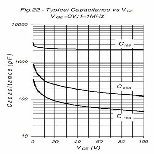 這些電容對橋式變換器設(shè)計是非常重要的,大部份的IGBT數(shù)據(jù)表中都給出這些參數(shù):