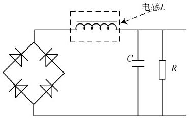 即功率因數(shù)校正( Pow er Factor Correct ion, PFC)是指有效功率與總耗電量( 視在功率) 之間的關(guān)系, 也就是有效功率除以總耗電量( 視在功率) 的比值。無源PFC 是指不使用晶體管等一些有源器件組成的校正電路, 一般情況下由二極管、電阻、電容和電感等無源器材組成。本文的PFC 主要是在整流橋堆和濾波電容之間加1 個電感, 具體原理如圖3 所示, 利用電感上的電流不能突變的特性來平滑電容充電強(qiáng)脈沖的波動, 改善電路中電流的畸變,并且利用電感上的電壓超前于電流這一特性來補(bǔ)償濾波電容電流超前電壓的特性, 使功率因數(shù)和電磁干擾都得以改善。