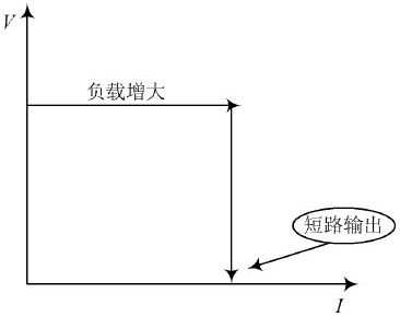 (3) 短路保護(hù)。整流模塊的輸出特性如圖5 所示,輸出短路時模塊在瞬間把輸出電壓拉低到零, 限制短路電流在限流點之下, 此時模塊輸出功率很小, 以達(dá)到保護(hù)模塊的目的, 這樣模塊長期可以長期工作在短路狀態(tài)而不至于損壞, 同時當(dāng)故障排除后模塊可以自動恢復(fù)工作。