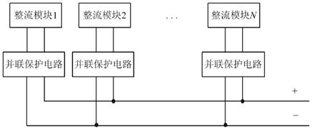 (4) 模塊并聯(lián)保護(hù)。每個模塊內(nèi)部均有并聯(lián)保護(hù)電路, 可以保證模塊發(fā)生故障時自動退出系統(tǒng), 從而不影響其他正常模塊的工作。模塊并聯(lián)輸出示意圖如圖6所示。