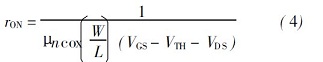 工作在線性區(qū)的MOS 管, 其導通電阻rON可由下式得出: