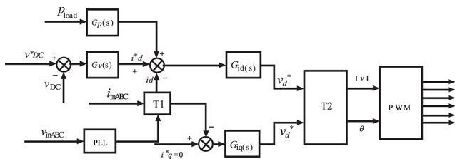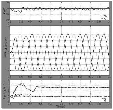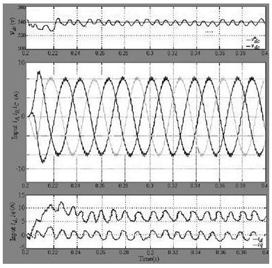 在正常工作條件下, 穩(wěn)壓器輸出穩(wěn)定的直流母線電壓和d 軸電流控制, 但是逆變器負(fù)荷不均衡, 就會產(chǎn)生波動(dòng)的直流電壓, 因此整流器在不平衡負(fù)載下會造成前端總諧波失真( THD) 的輸入電流。