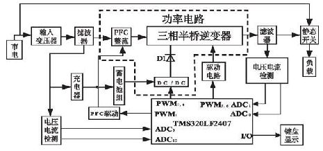 圖1 基于DSP 控制的在線式UPS 的結(jié)構(gòu)圖