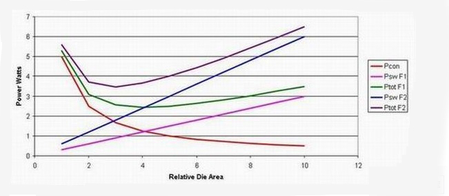 但是,在更高的工作頻率下,最佳裸片面積較小,從而帶來成本節(jié)約。實際上,在低頻率下,通過調(diào)整裸片面積來最小化損耗會帶來極高成本的設(shè)計。但是,轉(zhuǎn)到更高工作頻率后,我們就可以優(yōu)化裸片面積來降低損耗,從而縮小電源的半導(dǎo)體體積。這樣做的缺點是,如果我們不改進(jìn)半導(dǎo)體技術(shù),那么電源效率將會降低.此主題相關(guān)圖片如下:圖2 :提高工作頻率會導(dǎo)致更高的總體損耗。