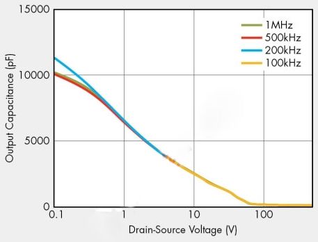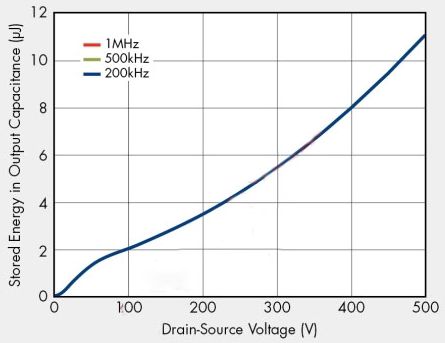 過去,許多設(shè)計人員都使用粗略假設(shè)來提供等效輸出電容值,因為輸出電容通常都指定為25V漏源電壓。不過,傳統(tǒng)的等效輸出電容值在實(shí)際應(yīng)用中卻沒有多大幫助,因為它隨漏源電壓變化,并且在開關(guān)導(dǎo)通/關(guān)斷期間不能提供準(zhǔn)確的儲能信息。在功率轉(zhuǎn)換器工作電壓下,新定義的輸出電容提供等效的儲能,能夠?qū)崿F(xiàn)更優(yōu)化的功率轉(zhuǎn)換器設(shè)計。
