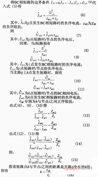 本文結(jié)合我國(guó)配電網(wǎng)的實(shí)際情況,提出首先采用比較各節(jié)點(diǎn)電壓確定故障區(qū)段,然后將故障區(qū)段始端故障負(fù)序電壓與本線路始端和末端短路時(shí)的負(fù)序電壓進(jìn)行運(yùn)算,從而能夠找出故障點(diǎn)的確切位置。本方法簡(jiǎn)單實(shí)用,在故障發(fā)生時(shí)僅需作出對(duì)比判斷,大大節(jié)省了計(jì)算時(shí)間,誤差分析表明本方法有較高的準(zhǔn)確度。
