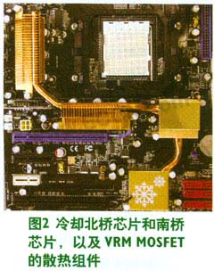 為了應(yīng)對未來的需求,出現(xiàn)了雙面封裝技術(shù),可讓主板設(shè)計師對高性能應(yīng)用的MOSFET進行散熱處理,迫使MOSFET廠商成為總體解決方案的供應(yīng)商。過去,臺式電腦在處理器及北橋芯片和南橋芯片上使用散熱片。雖然這在先前的主板設(shè)計中不常見(主要是成本原因),但對MOSFET進行散熱已越來越常見。高級主板市場已經(jīng)開始出現(xiàn)將北橋芯片和南橋芯片上的導(dǎo)熱管連接到VRM的MOSFET散熱片上的散熱組件(見圖2)。