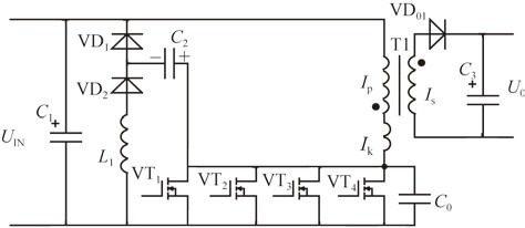 以上過程形成一個(gè)完整工作周期,可以看出,變壓器漏感中的能量大部分被回饋到輸入電容C 1中(C 0中有部分能量被消耗掉),所以電源效率得到提高。