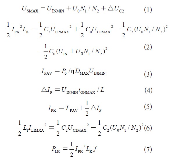 根據(jù)如下公式,可出計(jì)算出二極管VD0所承受的電壓應(yīng)力UDO、電流應(yīng)力ISK: