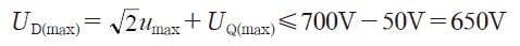為安全起見,U D ( max)至少應比漏-源極擊穿電壓7 00V留出5 0V的余量。這其中還考慮到P6KE200具有0.108%/℃的溫度系數(shù),當環(huán)境溫度T A=25℃時,U B=200V;當T A=100℃時,UB=200V×[(1+0.108)%/℃]×100℃=221.6V,可升高21.6V。