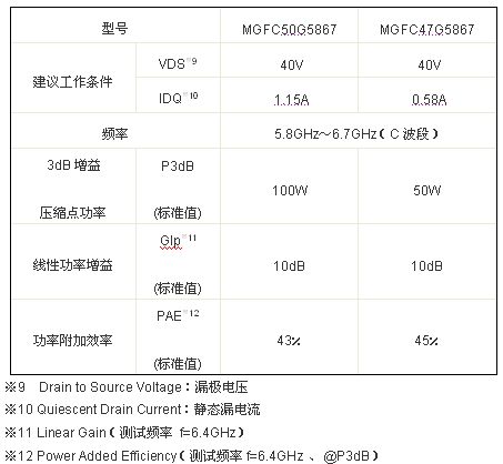 ?大功率,輸出功率分別達(dá)到100W(MGFC50G5867)和50W(MGFC47G5867)