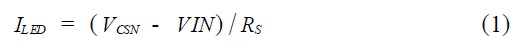 式中:ILED ---流過L ED 的電流;VCSN ---電壓檢測端電壓;RS ---電流采樣電阻。