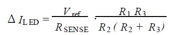 會導致電源功率耗散,但本設計中RSENSE = 0. 5Ω,則PRSENSE 相當小,另一方面,系統(tǒng)效率定義為LED 消耗的功率與電源提供的功率之比, 即η = PLED/ PPOWER. 其中, PPOWER =V in3 Ivin , PLED = V LED*