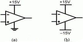 給一個(gè)運(yùn)算放大器供電有兩種常見方法。第一種也是最簡(jiǎn)單的一種方法是使用一個(gè)單一正電源,如圖1(a)所示。第二種方法是使用一個(gè)分離(雙)電源(如圖1(b)所示),其同時(shí)具有一個(gè)正電壓和一個(gè)負(fù)電壓。這種分離電源在許多模擬電路中都非常有用,因?yàn)樗试S包括零電壓電位的輸入信號(hào)或者在正與負(fù)之間搖擺的輸入信號(hào)。