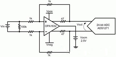由于運(yùn)算放大器的PSRR進(jìn)一步降低了電源的微小變化,因此您可能會(huì)錯(cuò)誤地得出如下結(jié)論:電源電壓的微小變化在系統(tǒng)中影響極小或者沒有影響。作為一個(gè)定量舉例,我們可對(duì)一個(gè)全差動(dòng)運(yùn)算放大器進(jìn)行分析,其將信號(hào)緩沖至一個(gè)24位ADC。